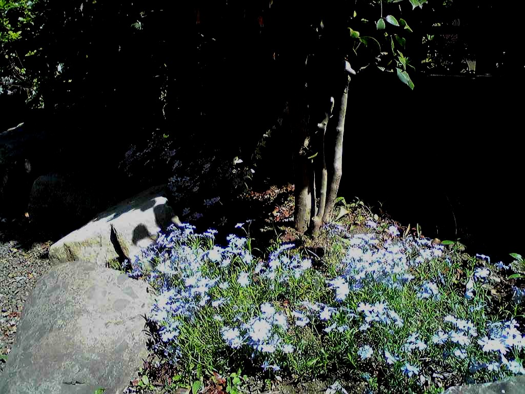 写真じゃ見難いけど、奥の方にも白地にピンクの芝桜が咲いています。