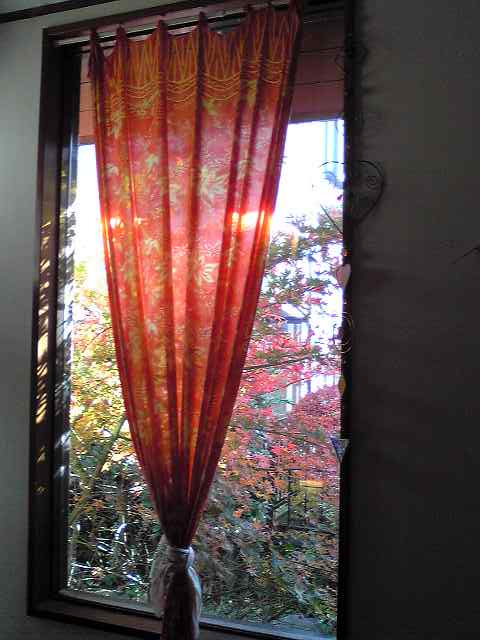 このクロスのオレンジと、窓の外側のもみじと、お隣の垣根の紅葉(なんて言う植木かわからないけど)が、とっても素敵な秋の景色を演出してくれました。