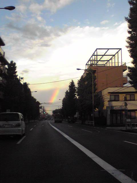 今日の夕方、ケンタへ向かって車を走らせていた時に見つけた虹。